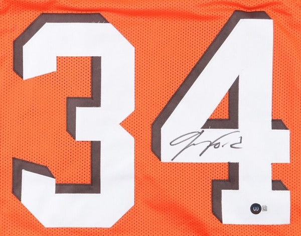 This autographed custom on-field style adult XL jersey has been personally hand-signed by Jerome Ford of the Cleveland Browns.This autograph is certified by Beckett Authentication Services (BAS) Witness Certification. That means that a Beckett representative was present when this item was signed. It comes with the numbered authentication hologram with a QR code card that verifies the authentication on the Beckett website.Custom on-field style jerseys are a more affordable option for autograph seekers. These jerseys do not have any brand name or tags and are made in the Philippines. They feature stitched on names and numbers and are made to look very similar to the on-field jerseys that the players wear. These custom jerseys are very commonly used in the memorabilia industry.