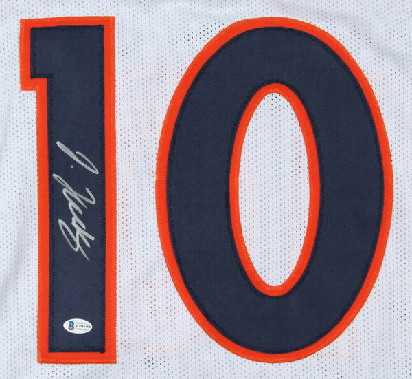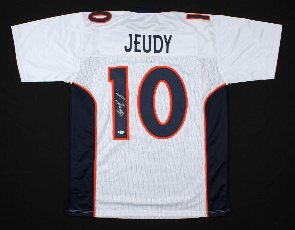 Custom on-field style jersey. Everything is sewn on, size XL. Has been hand-signed by Jerry Jeudy.The lot / autograph(s) includes an official Beckett Authentication Services serially-numbered hologram and matching COA for authenticity purposes. The signing of this item was witnessed by Beckett.Authentication: Beckett COA