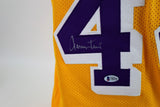 This autographed Los Angeles Lakers jersey by Jerry West is a must-have for any basketball fan. The jersey is an original, and comes with a Beckett Authentication Services (BAS) certificate of authenticity. The signature is pristine, making this a valuable addition to any sports memorabilia collection. The jersey is perfect for displaying in a sports room or proudly wearing to the next basketball game. The inscription, "HOF 1980-2010" adds a personal touch to this already remarkable item. This is a rare opportunity to own a piece of basketball history.
