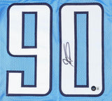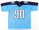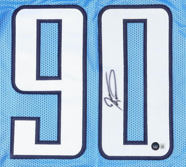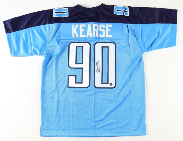 Custom on-field style jersey. Everything sewn on, size XL. Hand-signed in black felt-tip pen by Jevon Kearse. The lot / autograph(s) includes an official Beckett Authentication Services serially numbered hologram and QR Code card for authenticity purposes. The signing of this item was witnessed by Beckett.Authentication: Beckett QR Code card