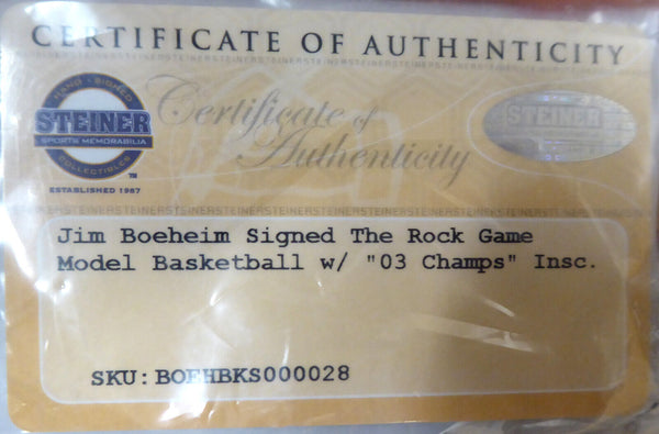This is a "The Rock" Basketball that has been hand signed by Jim Boeheim.A It has been certified authentic by Steiner and comes with their sticker and matching certificate of authenticity.