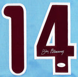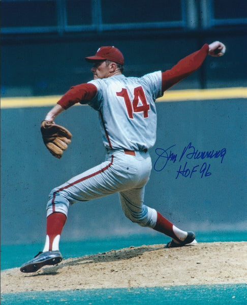 Custom on-field style jersey. Everything is sewn on, size XL. Hand-signed in silver paint pen by Jim Bunning (HOF). Passed away 2017. James Paul David Bunning was an professional baseball pitcher and later a politician who represented constituents from Kentucky in both chambers of the United States Congress. The autograph includes an official James Spence Authentication (JSA) hologram and matching COA for authenticity purposes. The signing of this item was witnessed by JSA.Authentication: JSA COA