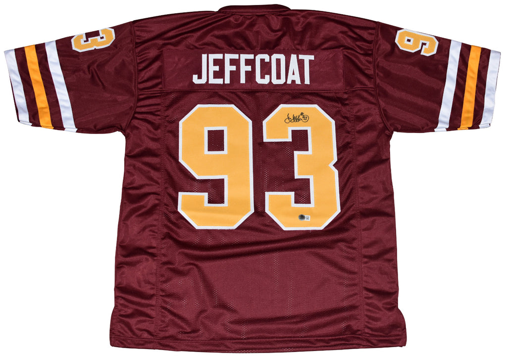 Jim Jeffcoat, former All-American defensive end for the Arizona State Sun Devils, has hand signed this custom jersey. Jersey is size XL and all letters/numbers are sewn-on. This item is authenticated by Beckett Authentication Services and was signed in the presence of one of their representatives. Their tamper-evident hologram featuring a QR code and serial number is on the item. The authenticity can be verified online by entering the serial number or scanning the QR code.Item pictured may not be the exact item you will receive. It will be similar quality, and we guarantee your satisfaction.