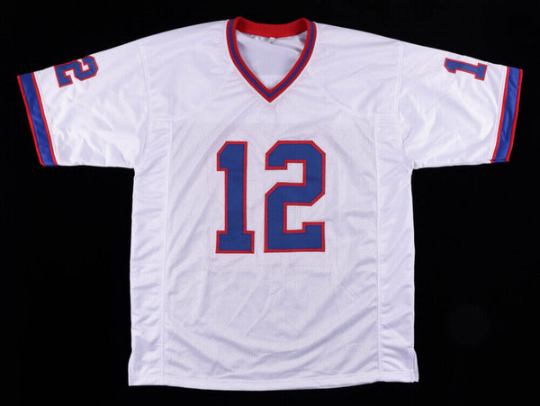 Custom on-field style jersey. Everything is sewn on, size XL. Has been hand-signed by Jim Kelly (HOF).The lot / autograph(s) includes an official Beckett Authentication Services serially-numbered hologram and QR Code Card for authenticity purposes. The signing of this item was witnessed by Beckett.Authentication: Beckett Hologram & QR Code Card