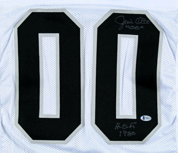 Custom on-field style jersey. Everything sewn on, size XL. Hand signed by Jim Otto (HOF). The lot / autograph(s) includes an official Beckett Authentication Services serially numbered hologram and QR Code card for authenticity purposes.Authentication: Beckett QR Code card