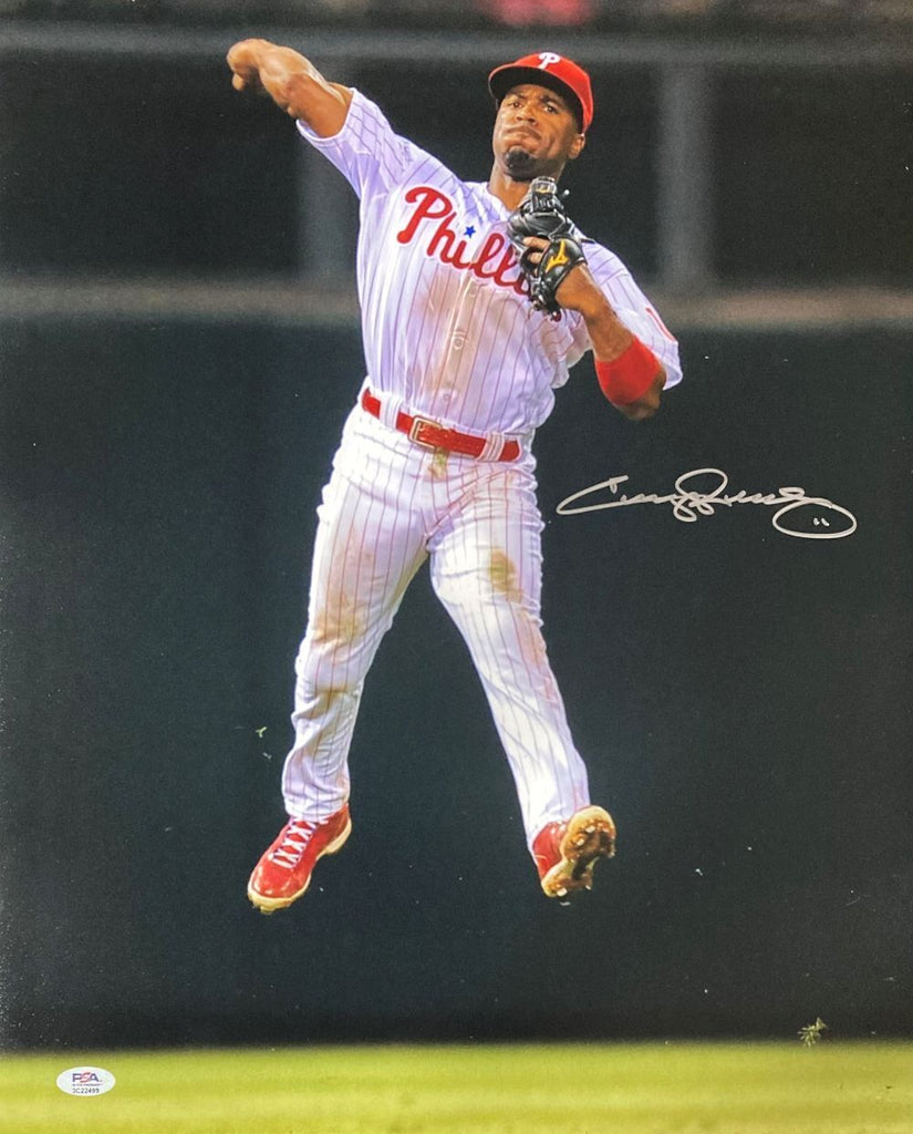 Featured is a Jimmy Rollins signed 16x20 Philadelphia Phillies photo. This photo has been hand signed by Rollins and comes with the PSA hologram. This photo would make a great addition to any sports memorabilia collection!. SPECIFICATIONS Autographed By: Jimmy Rollins Team: Philadelphia Phillies Sport: Baseball Authentication: PSA/DNA Authentication Services