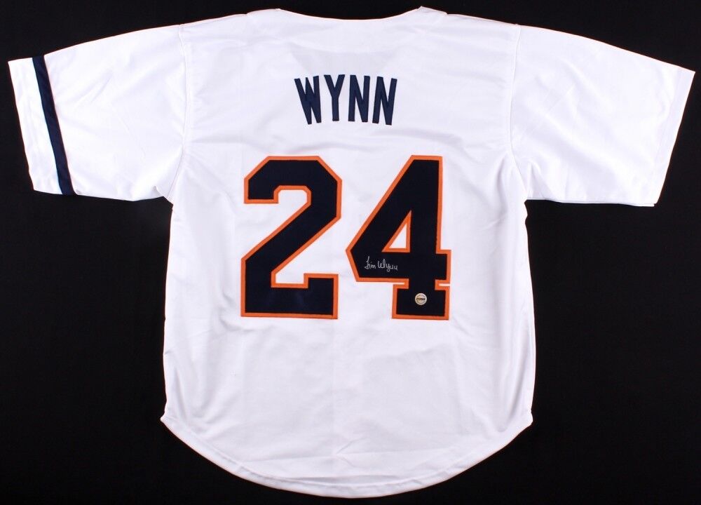 Custom on-field jersey. Everything is sewn on, size XL. Hand-signed in black felt tip pen by Jimmy Wynn. The lot / autograph(s) includes an official Fiterman Sports hologram for authenticity purposes.Authentication: Fiterman Sports Hologram