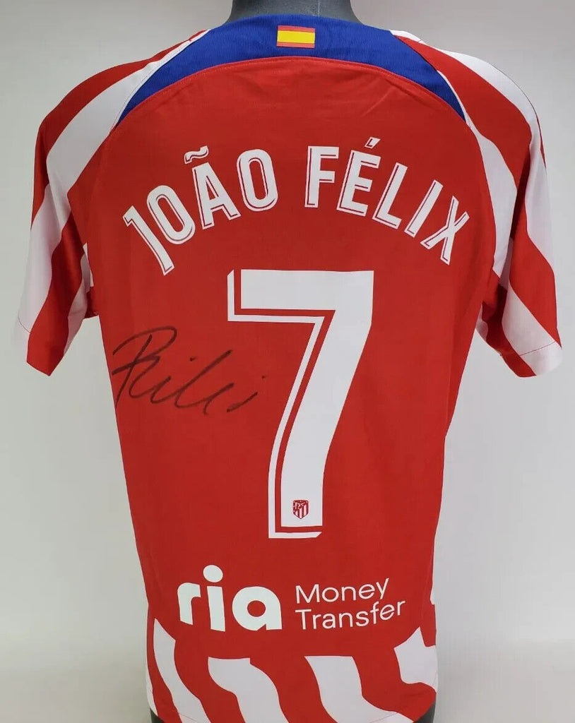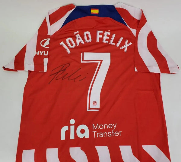 This autographed soccer jersey has been personally hand-signed by Joao Felix of Atletico Madrid.This autograph is certified by Players Ink. It comes with the numbered authentication hologram with a QR code that verifies the authentication on the Players Ink website. Scan the QR code with your mobile phone to verify the authenticity.