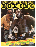 This is an International Boxing magazine that has been hand signed by Joe Frazier. This item has been certified authentic by Beckett Authentication (BAS) and comes with their Tamper-proof QR Code Hologram that can be verified on the Beckett-authentication.com.