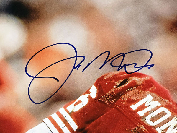 This is a 16x20 Photo that has been hand signed by Joe Montana. This item has been certified authentic by Beckett Authentication (BAS) and comes with their tamper-proof QR Code sticker that can be verified on beckett-authentication.com.