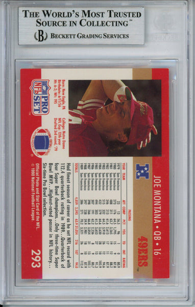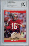 Joe Montana Autographed 1990 Pro Set #293 Trading Card Beckett Slab 37494 The number in the listing title is just an inventory sku for our records and is not the authentication number. The item pictured is a stock photo unless otherwise noted. This is a trading card that was personally autographed by Joe Montana. This has been professionally slabbed by Beckett Authentication Services (BAS) and includes a certificate of authenticity from Denver Autographs.