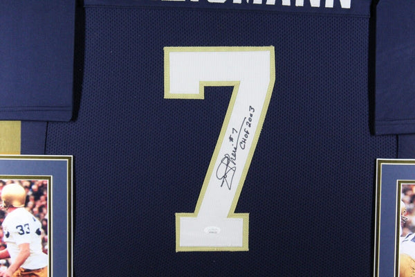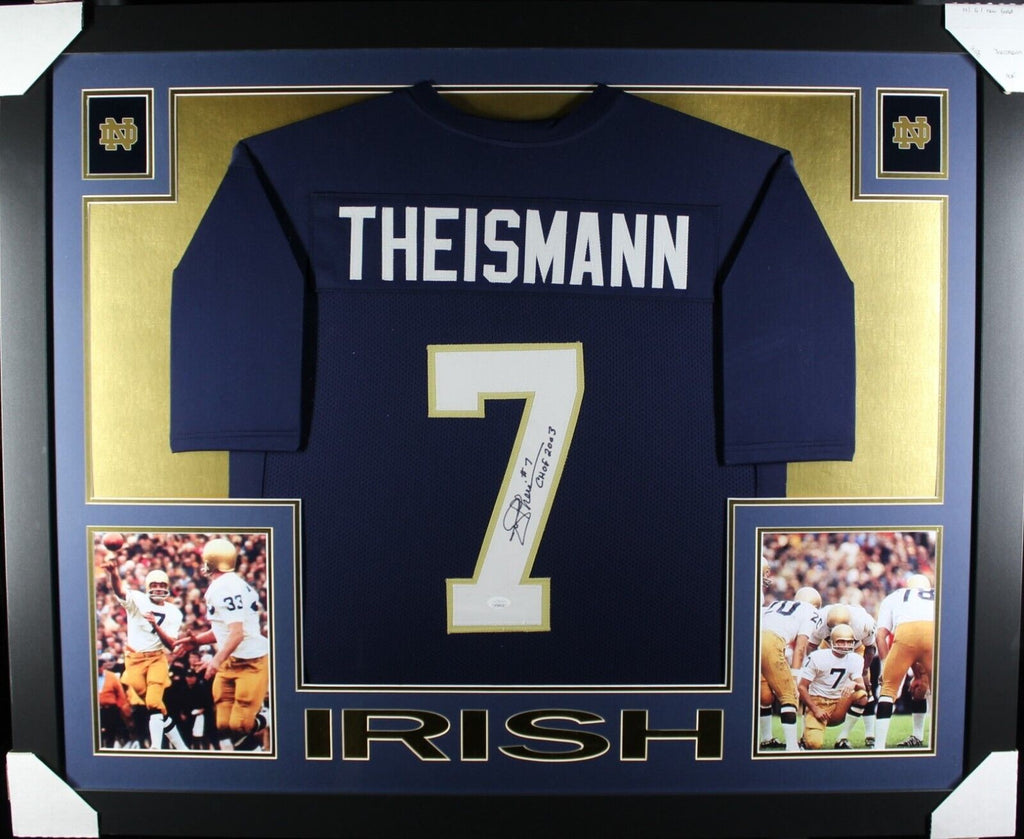 JOE THEISMANN AUTOGRAPHED & PROFESSIONALLY FRAMED PRO-STYLE JERSEY"CHOF 2003" Inscribed(Occasionally our own stock pictures are used at times due to quantity of framing, all frames will look identical as the one pictured)THE FRAMED JERSEY MEASURES 35"x 44" & COMES WITH THE FOLLOWING:-UV Protected Acrylic-Triple Acid Free Team Colored Matting-2 High Quality 8"x10" Photos-Team LogoEvery framed autographed jersey is accompanied with a tamper-proof hologram on the signed part of the jersey from one of the main authenticators in the industry (JSA, Beckett, PSA, etc.) and can be verified on their corresponding websites to prove authenticity.ATTENTION:If there's any damage during shipping then please message us immediately and save the box!DO NOT OPEN A RETURN OR DISPUTE PLEASE!We will provide a return label to send the frame back so we can fix any issues right away and ship it right back to you, free of charge of course!WE DO NOT OFFER PARTIAL REFUNDS TO FIX LOCALLY AS EVERYTHING IS FRAMED/FIXED IN HOUSE- Thank you -