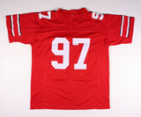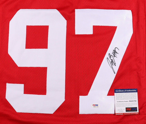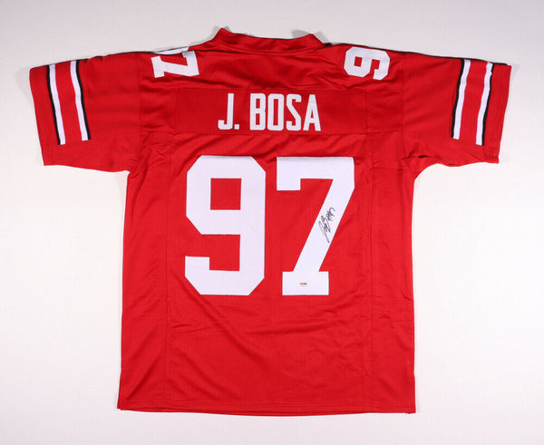 Custom on-field style jersey. Everything is sewn on, size XL. Hand-signed by Joey Bosa.The lot / autograph(s) includes a PSA/DNA "Rookie Graph" hologram and COA. "Rookie Graph" is the autographed memorabilia equivalent to a rookie card. The PSA/DNA definition of a "Rookie Graph" is as follows: "Any item that is autographed and received by PSA/DNA prior to the beginning of the athlete's second full season."Authentication: PSA COA