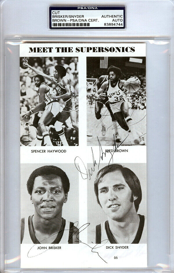 This is a 4.5x8 Cut Signature that has been hand signed by John Brisker, "Downtown" Fred Brown & Dick Snyder. It has been certified authentic by PSA/DNA and comes encapsulated in their tamper-proof holder.