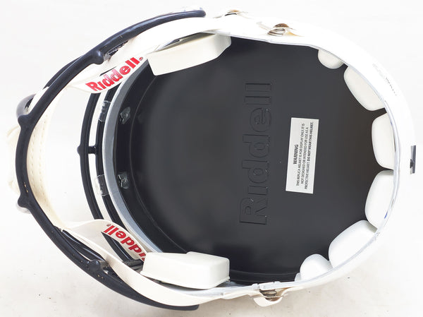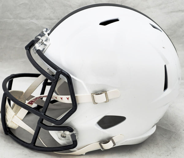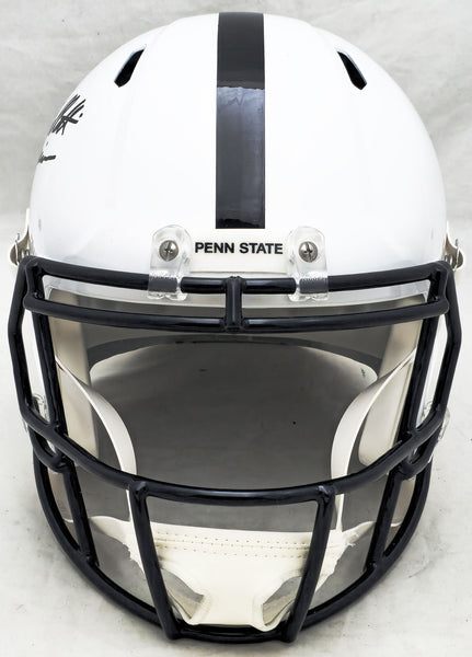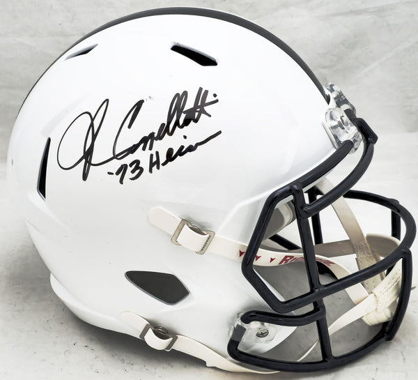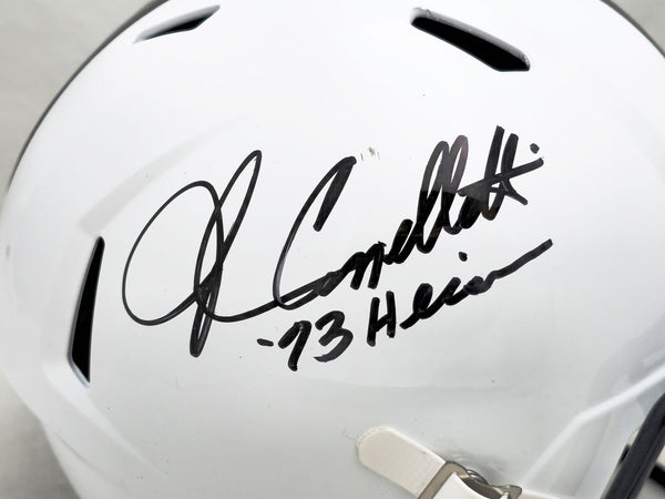 This is a Penn State Nittany Lions White Full Size Replica Speed Helmet that has been hand signed by John Cappelletti. This item was inscribed "73 Heis." There is an imperfection in the signature as shown. This item has been certified authentic by JSA and comes with their tamper-proof hologram and matching certificate of authenticity.