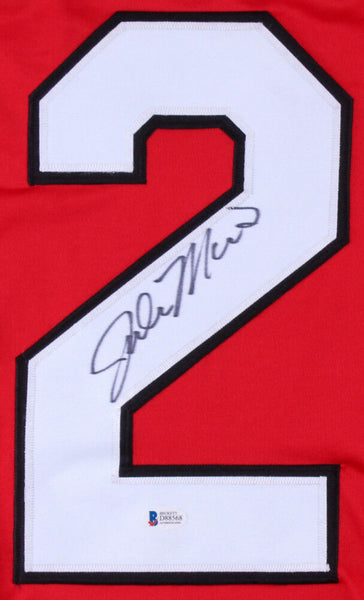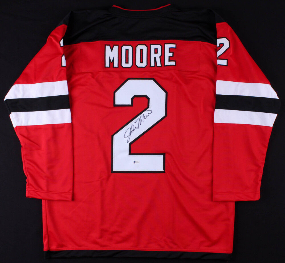 Custom on-ice style jersey. Everything is sewn on, size XL. Hand-signed in black felt-tip pen by John Moore. The lot / autograph(s) includes an official Beckett Authentication Services serially numbered hologram and matching COA for authenticity purposes.Authentication: Beckett COA