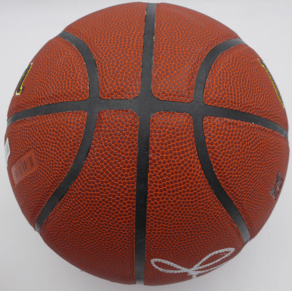 This is a Composite Leather Utah Jazz Logo that has been hand signed by John Stockton. There is a smudge in the signature as shown. This item has been certified authentic by Beckett Authentication (BAS) and comes with their tamper-proof QR Code sticker that can be verified on the Beckett-authentication.com.