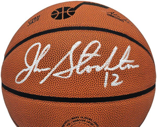 This is Composite Leather Utah Jazz Logo Basketball that has been hand signed by John Stockton. This item has been witnessed and certified authentic by Beckett Authentication (BAS) and comes with their tamper-proof witness sticker.