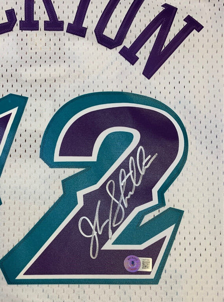 John Stockton has autographed this official Utah M&N jersey. Size XXL name and numbers sewn on. Always a TOUGH autograph. These were signed in January 2024. Autograph was witnessed and authenticated by Beckett Authentication Services (BAS). Simply scan the QR code hologram on your item to verify authenticity on their site. 100% authentic.Stock image.