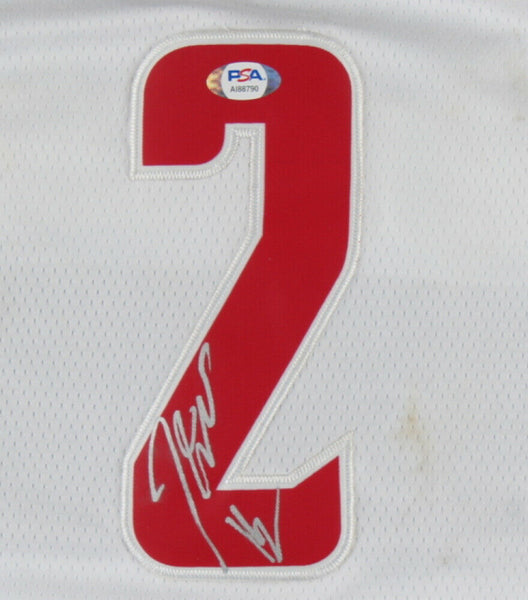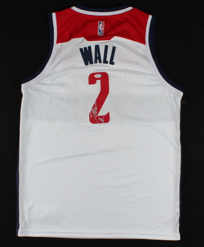 Custom on-court style jersey. Everything sewn on, size 52. Hand-signed by John Wall (Washington Wizards). Please note, jersey has a few stains.The lot / autograph(s) includes an official PSA/DNA hologram for authenticity purposes.Authentication: PSA Hologram