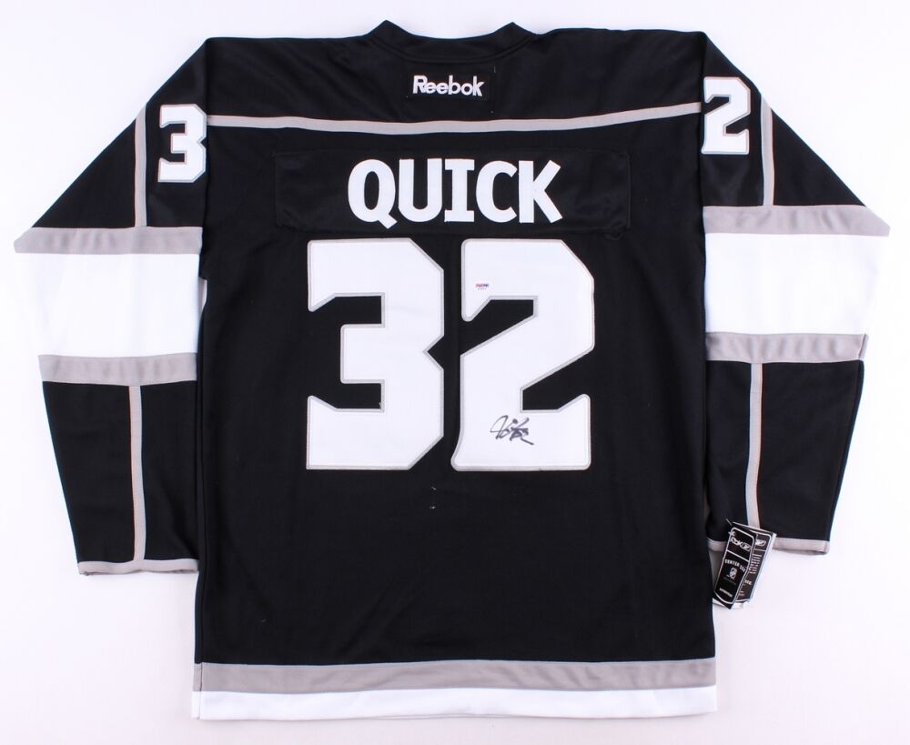 Reebok on-ice style jersey. Everything is sewn on, size 50. Hand-signed in black felt-tip pen by Jonathan Quick (Kings). The autograph includes an official PSA/DNA hologram and matching COA for authenticity purposes.Authentication: PSA COA