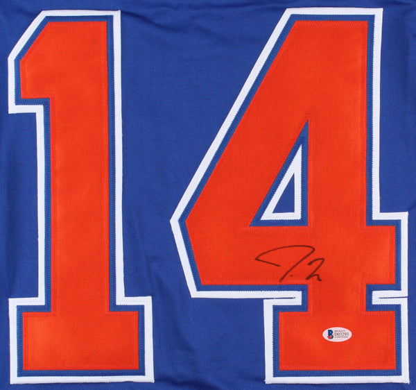 Custom on-ice style jersey. Everything is sewn on, size XL. Hand-signed in black felt-tip pen by Jordan Eberle (Oilers). The autograph includes an official Beckett hologram and matching COA for authenticity purposes.Authentication: Beckett COA