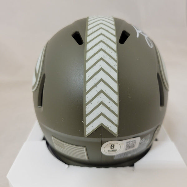 JORDAN LOVE SIGNED GREEN BAY PACKERS SALUTE TO SERVICE (STS) SPEED MINI HELMET WITH BECKETT QR HOLOGRAMTHIS MEANS THE HELMET WAS SIGNED WITH A BECKETT REPRESENTATIVE PRESENT SO YOU CAN BE 100% CERTAIN ITS THE REAL THING.