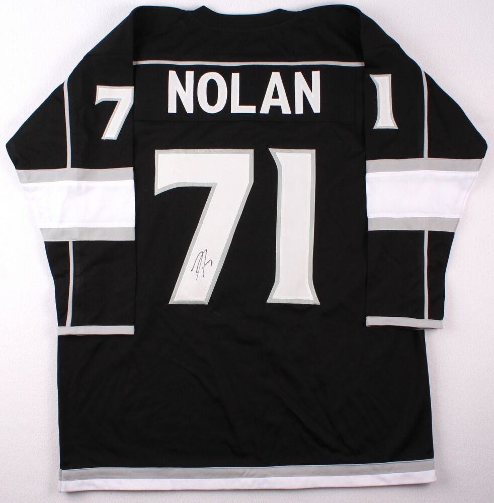 Custom on-ice style jersey. Everything sewn on, size XL. Hand-signed in black felt-tip pen by Jordan Nolan. The autograph includes an LOA and lifetime authenticity guarantee from Pristine Auction House.Authentication: Pristine Auction House LOA