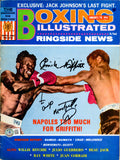 This is a Boxing Illustrated magazine that has been hand signed by Jose Napoles & Emile Griffith. This item has been certified authentic by Beckett Authentication (BAS) and comes with their tamper-proof hologram.