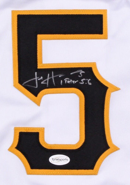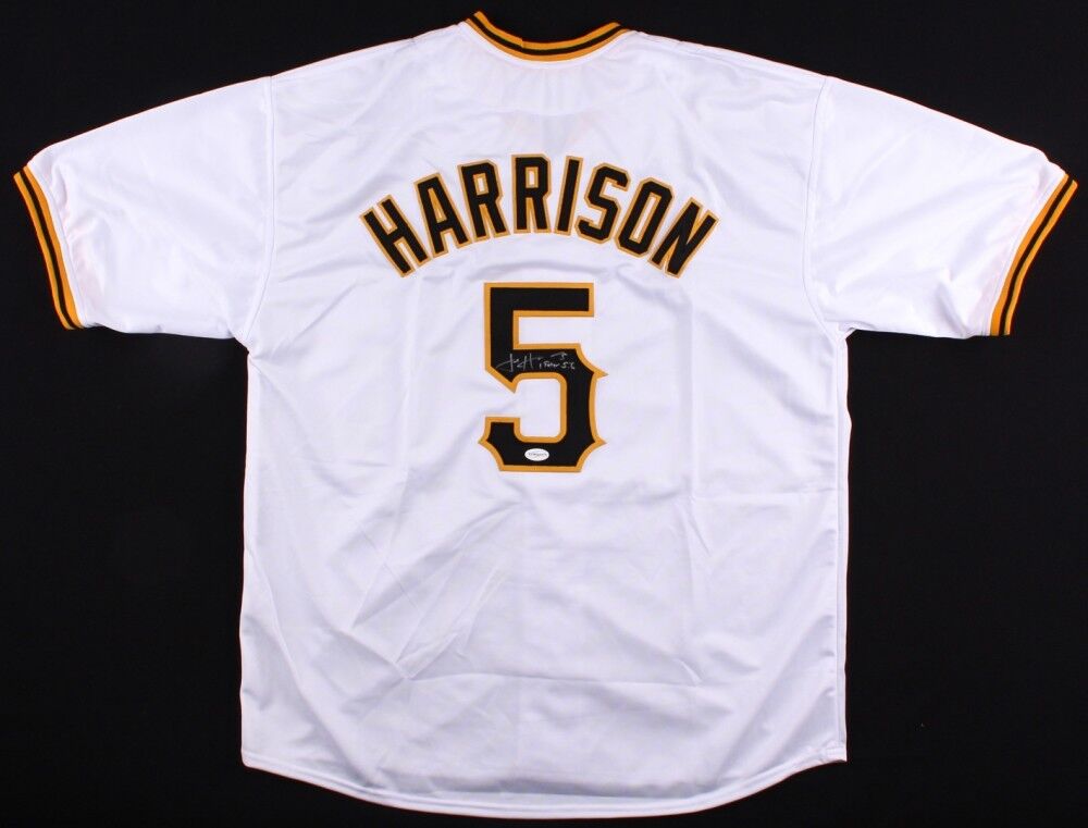Custom on-field style jersey. Everything sewn on, size XL. Hand-signed in white paint pen by Josh Harrison. The lot / autograph(s) includes an official Total Sports Enterprises (TSE) hologram and matching COA for authenticity purposes. Authentication: Total Sports Enterprises COA