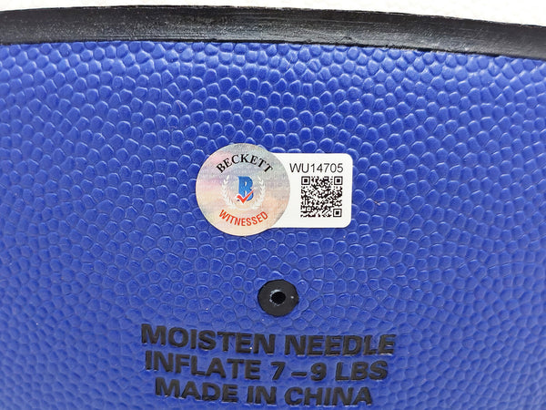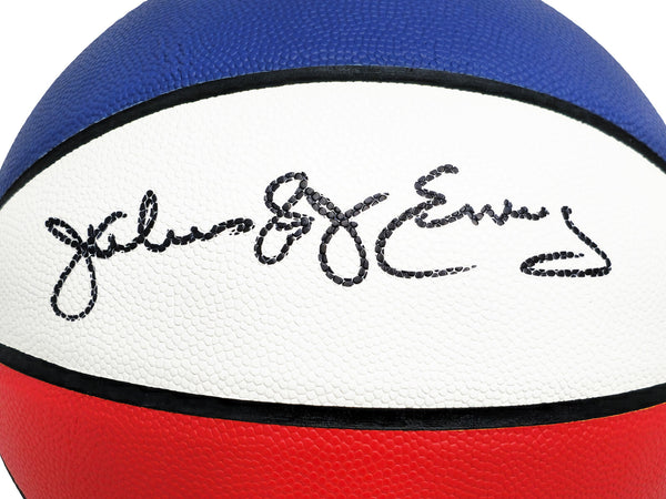 This is a Red, White & Blue ABA Logo Basketball that has been hand signed by Julius "Dr. J" Erving This item has been witnessed and certified authentic by Beckett Authentication (BAS) and comes with their tamper-proof witness sticker.