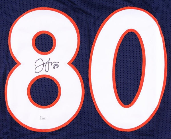 Custom on-field style jersey. Everything is sewn on, size XL. Hand-signed in black felt-tip pen by Julius Thomas (Denver Broncos, Jacksonville Jaguars, Miami Dolphins). The autograph includes an official James Spence Authentication (JSA) hologram and matching COA for authenticity purposes. Authentication: JSA COA