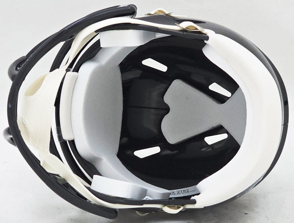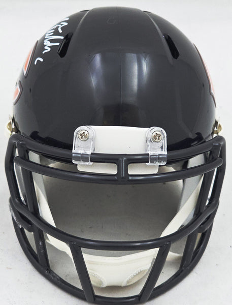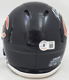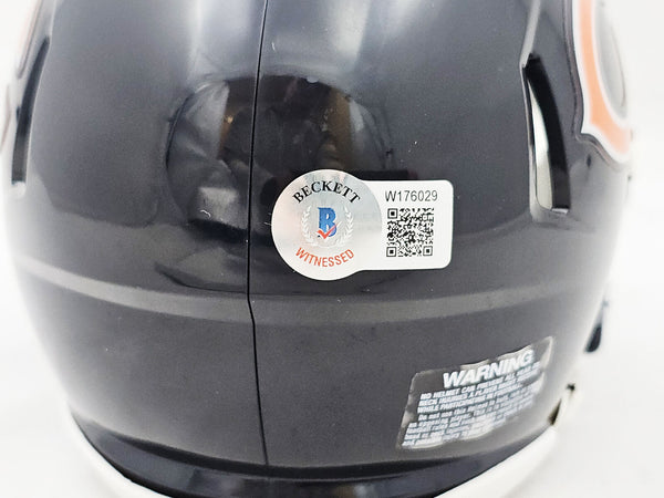 This is a Chicago Bears Blue Speed Mini Helmet that has been hand signed by Justin Fields. This item has been witnessed and certified authentic by Beckett Authentication (BAS) and comes with their tamper-proof witness sticker.