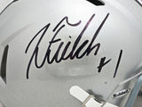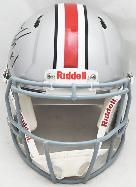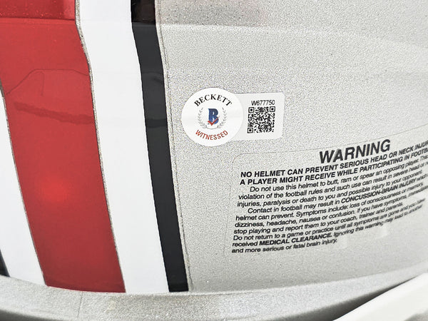 This is an Ohio State Buckeyes Silver Full Size Authentic Speed Helmet that has been hand signed by Justin Fields. This item has been witnessed and certified authentic by Beckett Authentication (BAS) and comes with their tamper-proof witness sticker.