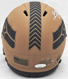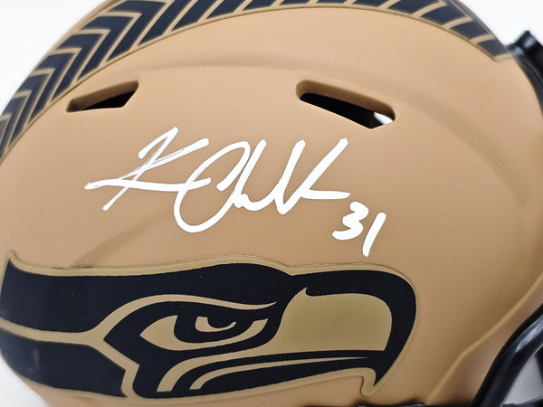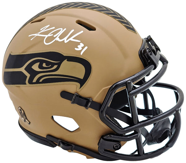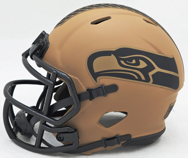 This is a Seattle Seahawks 2023 Salute to Service Camo Brown Speed Mini Helmet that has been hand signed by Kam Chancellor. Because each Camo helmet is hand-dipped using water-transfer technology there may be slight imperfections. This item was signed in the presence of a Mill Creek Sports representative and comes with their serial numbered hologram and matching certificate of authenticity.