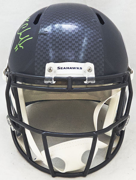This is a Seattle Seahawks Blue Full Size Replica Speed Helmet that has been hand signed by Kam Chancellor. This item was signed in the presence of a Mill Creek Sports representative and comes with their serial numbered hologram and matching certificate of authenticity.