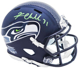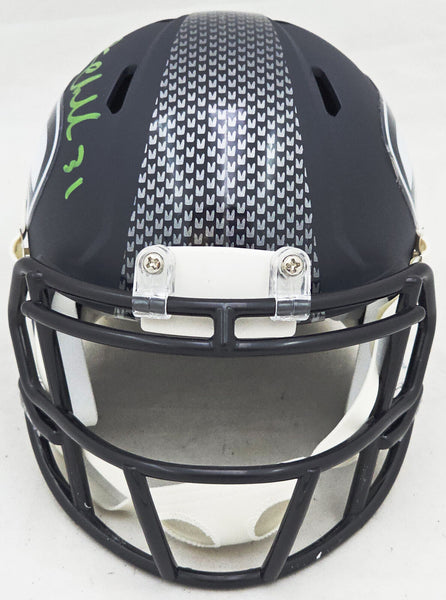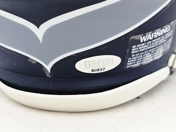 This is a Seattle Seahawks Blue Speed Mini Helmet that has been hand signed by Kam Chancellor. This item was signed in the presence of a Mill Creek Sports representative and comes with their serial numbered hologram and matching certificate of authenticity.