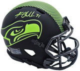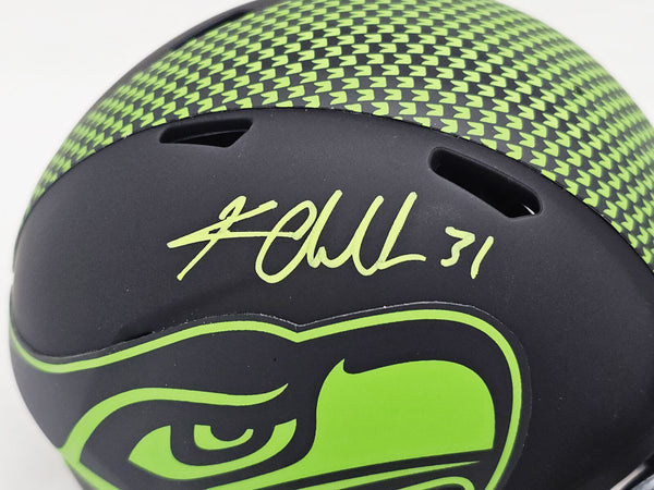 This is a Seattle Seahawks Eclipse Black Speed Mini Helmet that has been hand signed by Kam Chancellor. The Eclipse helmets are delicate and may have some marks or scratches on them. This item was signed in the presence of a Mill Creek Sports representative and comes with their serial numbered hologram and matching certificate of authenticity.