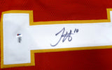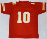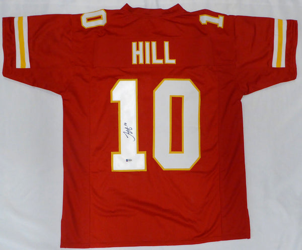 This is a Red Jersey that has been hand signed by Tyreek Hill. This is a custom jersey with no name brand. The approximate size is XL. It has nice sewn in name and numbers. This item has been certified authentic by Beckett Authentication (BAS) and comes with their tamper-proof QR Code sticker that can be verified on the Beckett-authentication.com.