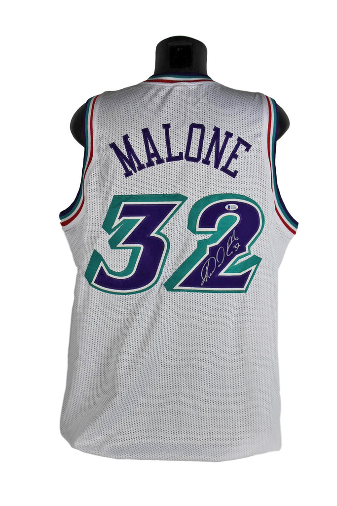 This is a "Mailman" inscribed Authentic Signed White Jersey that has been Personally Signed & Autographed by Karl Malone of the Utah Jazz. This item is 100% Authentic to include a Certificate of Authenticity (COA) / hologram by Beckett Authentication Services Witnessed. This is a BAS Witnessed Program item which means a Beckett Authentication Service representative was present when this item was signed. You can also see the authentication on the Beckett Authentication website and verify the date of the signature.
