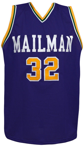 Karl Malone signed purple custom basketball jersey. Item comes with a JSA (James Spence Authentication) tamper evident numbered sticker and Certificate of Authenticity which can be verified online. Jersey is size XL.
