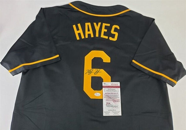 Custom on-field style jersey. Everything is sewn on, size XL. Hand-signed in Black Sharpie pen by Ke'Bryan Hayes. The lot / autograph(s) includes an official James Spence Authentication (JSA) hologram and matching COA for authenticity purposes. The signing of this item was witnessed by JSA.Authentication: JSA COA