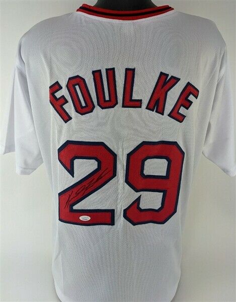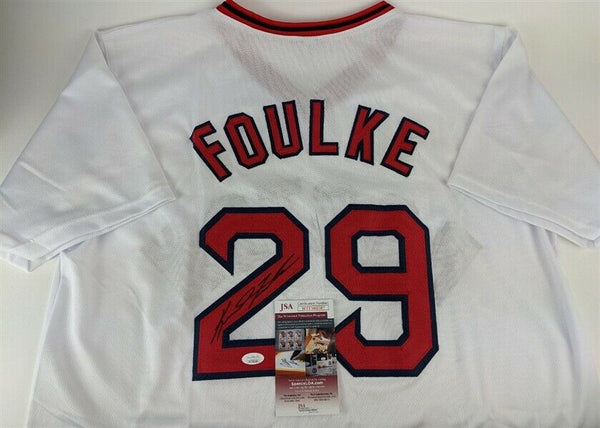 Custom on-field style jersey. Everything is sewn on, size XL. Hand-signed in Black Sharpie pen by Keith Foulke. The autograph includes an official James Spence Authentication (JSA) hologram and matching COA for authenticity purposes.Authentication: JSA COA
