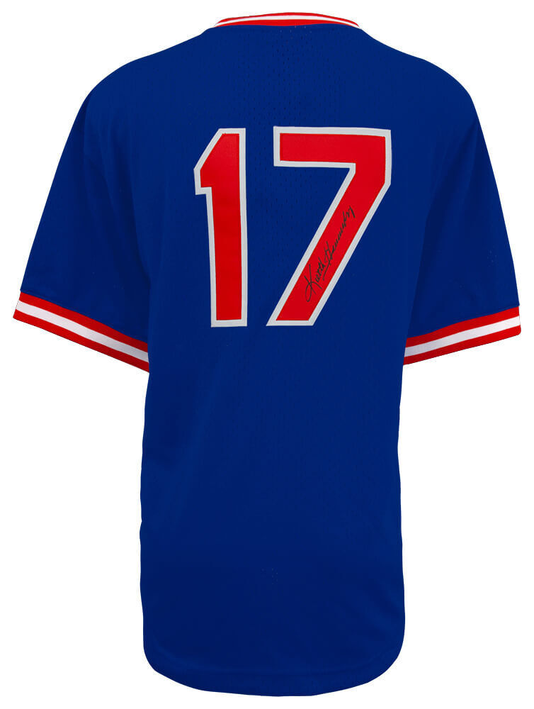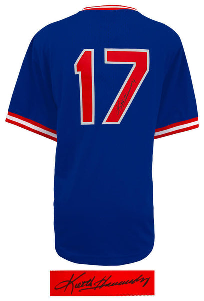 Keith Hernandez signed New York Mets blue Mitchell & Ness batting practice baseball jersey. Item comes with a Schwartz Sports Memorabilia tamper-proof numbered hologram and Certificate of Authenticity which can be verified online.