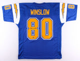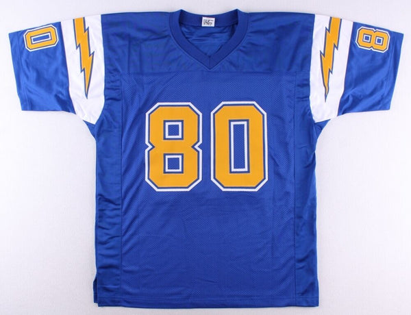 Custom on-field style jersey. Everything is sewn on, size XL. Hand-signed in black felt-tip pen by Kellen Winslow (Chargers HOF). The autograph includes an official MAB Celebrity Services hologram for authenticity purposes.Authentication: MAB Hologram
