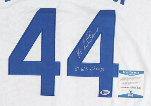 On-field style jersey. Everything is sewn on, size L. Hand-signed and inscribed by Ken Landreaux.The lot / autograph(s) includes an official Beckett Authentication Services serially-numbered hologram and matching COA for authenticity purposes. The signing of this item was witnessed by Beckett.Authentication: Beckett COA