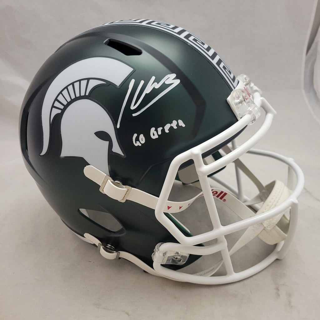 KENNETH WALKER III AUTOGRAPHED SIGNED MICHIGAN STATE SPARTANS FULL SIZE SPEED REPLICA HELMET WITH "GO GREEN" INSCRIPTION AND BECKETT WITNESSED QR CODE COA