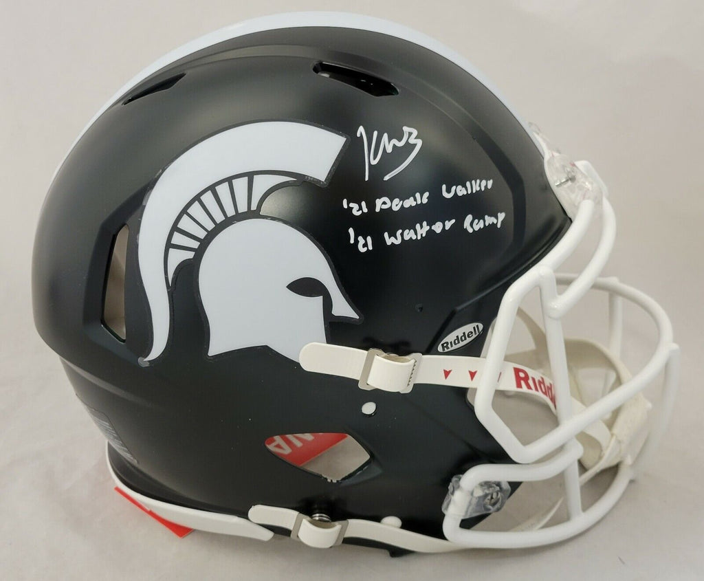 KENNETH WALKER III AUTOGRAPHED SIGNED MICHIGAN STATE SPARTANS FULL SIZE SPEED AUTHENTIC HELMET "21 DOAK WALKER" "21 WALTER CAMP"INSCRIPTIONSBECKETT WITNESSED COA