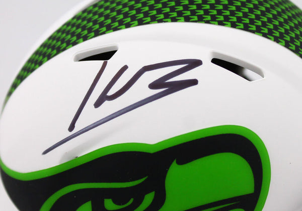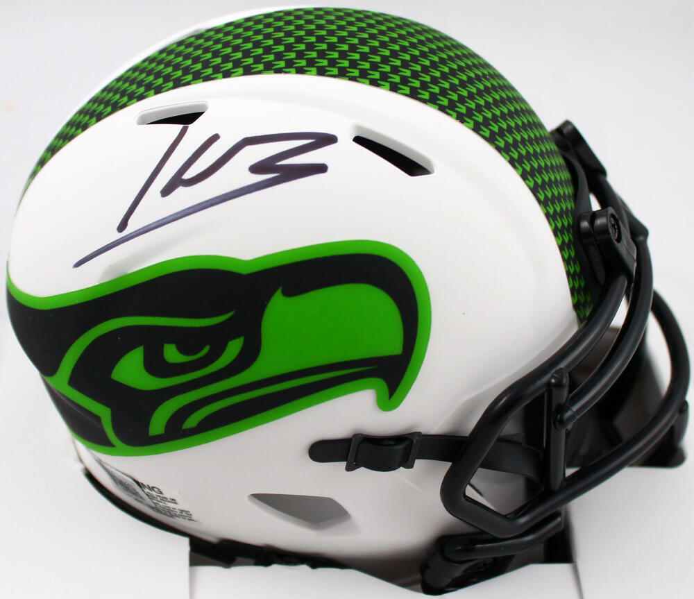 Kenneth Walker III Autographed Seattle Seahawks Lunar Speed Mini Helmet-Beckett W Hologram *Black This is a Kenneth Walker III of the Seattle Seahawks hand autographed Riddell Football Lunar Speed Mini Helmet. It has a Beckett Witnessed Authentication, which comes with a numbered sticker hologram and a QR code for verification. You can view this item on the Beckett website and it shows when and where the item was signed. It was signed either at a public autograph appearance or a private signing. This is a stock photo of the item. Although you may not receive this exact item, the item you receive is virtually identical, brand new, and in great shape.