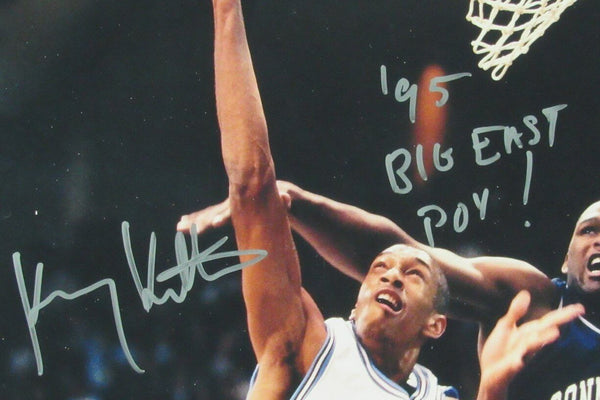 Kerry Kittles Autographed/Inscribed "95 BIG EAST POY!" 11x14 Photo Villanova Wildcats Framed. The outer frame size is 18 inches x 22 inches. This photo is authenticated by BAS/Beckett and includes their Tamper-proof Hologram Sticker.